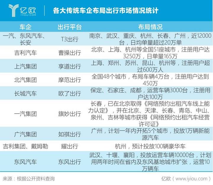 车企布局共享出行情况