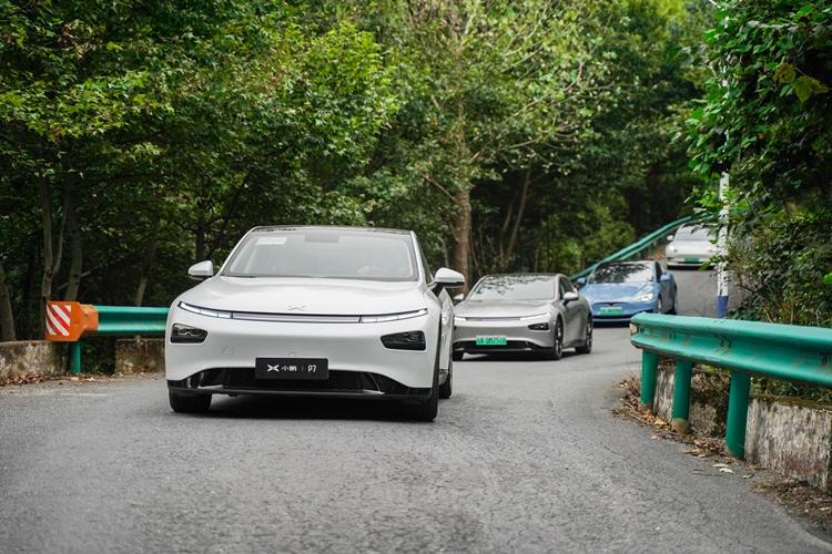 而在结束第一个目的地的探访后,来时上山的路就变为了去时下山的路。这段山路在变为反方向行驶后考验的就是各车动能回收的效率是否够高。这其中要表扬一下两款小鹏P7,在下山路段结束时,两辆小鹏P7在表显续航上都增加了10公里左右的续航。