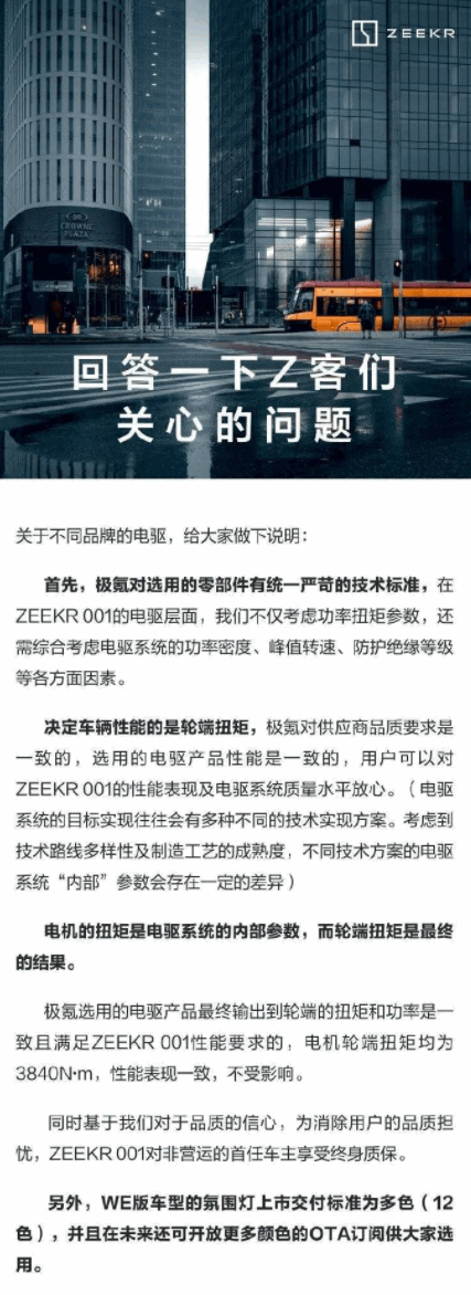 相信此后极氪也会给出一个明确的时间点,比如2022年某个批次起,正式开始使用「威睿」的电驱。其实,极氪只需把话说清楚,相信大家都是可以接受的。
