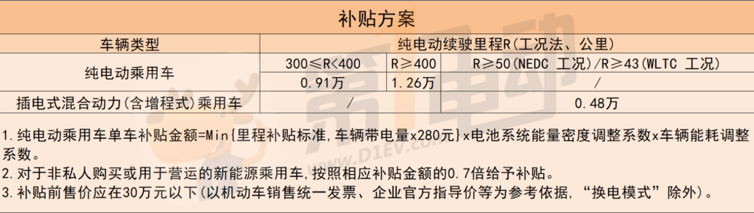 1、补贴退坡:2022年新能源汽车补贴政策,是在 2021 年的补贴基础上退坡 30%,纯电续航里程300≥400公里的车型补贴为0.91万元,较2021年少了0.39万元。纯电续航里程大于400公里的车型补贴为1.26万元,较2021年少了0.54万元。