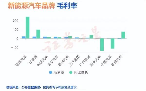 按照同比增长来看,这十家车企的排名为:吉利汽车、理想汽车、长城汽车、比亚迪、蔚来汽车、零跑汽车、小鹏汽车、上汽集团。