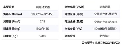11月工信部公示了《道路机动车辆生产企业及产品公告》(第389批)。此次公告中北汽福田汽车股份有限公司旗下出现了一款轻客新品BJ5030XXYEVZ0,预计是一款重量级的新能源VAN成型。