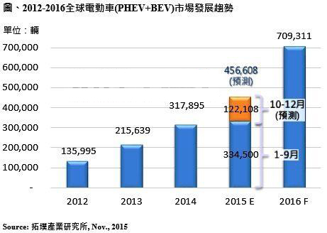 ·燃油车汰换已是不可逆趋势,电动汽车销量持续加温──随着排放法规日趋严格以及逐渐恶化的霾害等空污问题,将原本造成大量污染的燃油车辆汰换为电动汽车辆已是不可逆的趋势,加上智慧化也为电动汽车辆找到一个相当好的突破口,因此2016年全球电动汽车市场会延续近几年的成长动能,在销售量上持续加温。