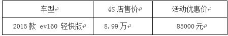 近日编辑从位于江岸区黄浦科技园兴业路136号的武汉万帮新能源汽车体验店获悉,店内EV160车型现车有售,开年第一波福利来袭,现降价4900元!活动优惠政策本月16日截止,过后恢复原价,预购从速,感兴趣的可到店内咨询或电话咨询027-65029772.