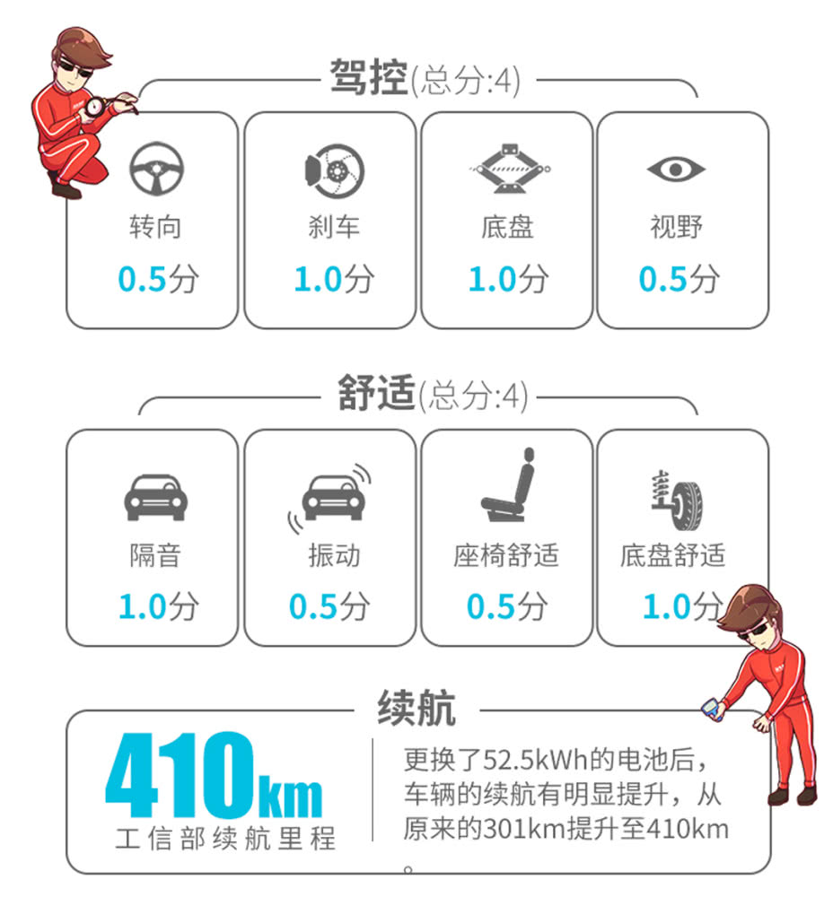 2020款微蓝最大的卖点在于其续航能力的提升,相比起2019款捉襟见肘的301km续航里程,2020款直接飙升至410km。410km的续航准确度相当高,实际车辆行驶1km续航里程就减去1km,不会出现某些厂家“虚标”的现象,这一点值得称赞!
